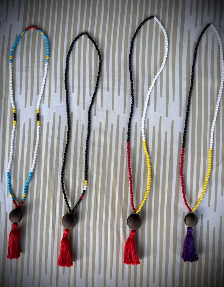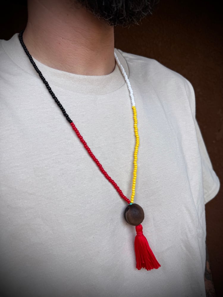 These are our Signature Ojo De Venado! Representing the Native Culture in its totality. Pure medicine. These necklaces are made with thin plastic fishing string for extra strength and fire forged for sealing to guarantee a strong hold. They are 38cm-40cm.